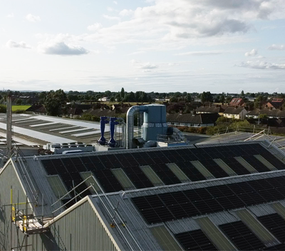 - Biomass heating system – fuelled by recycled chipboard and wood offcuts, generating 573 MWh of renewable energy in 2023 and saving £86,000 annually in heating costs.