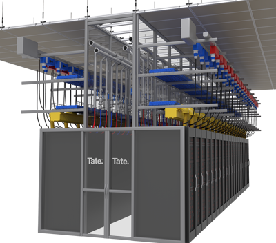 Tate’s Hot Aisle Containment (HAC) systems deliver advanced airflow management, and when paired with integrated manifolds, they become a powerhouse of hybrid cooling. This combination brings together the precision of liquid cooling with the containment benefits of traditional airflow strategies.