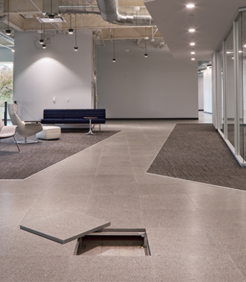 An innovative flooring system, raised access floors feature a hidden void underneath the surface panel, providing easy access to the underfloor space.