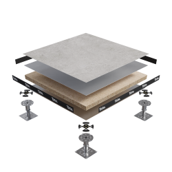 FDEB_M panels are comprised of galvanised steel top and bottom sheet that is bonded to the core. A resilient covering is applied to the top and the panel is finished with an ABS edge band. FDEB_M is suitable for use in data centres, comms rooms and server rooms. The result is a PSA: 2021 medium grade elevated modular floor onto which IT components can be placed including server cabinets, uninterruptible power supplies, and cooling systems.